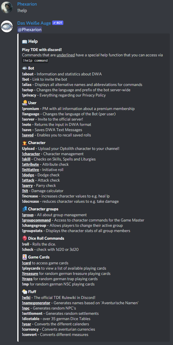 This Discord Bot will help you to explore the world of The Dark Eye to the fullest.